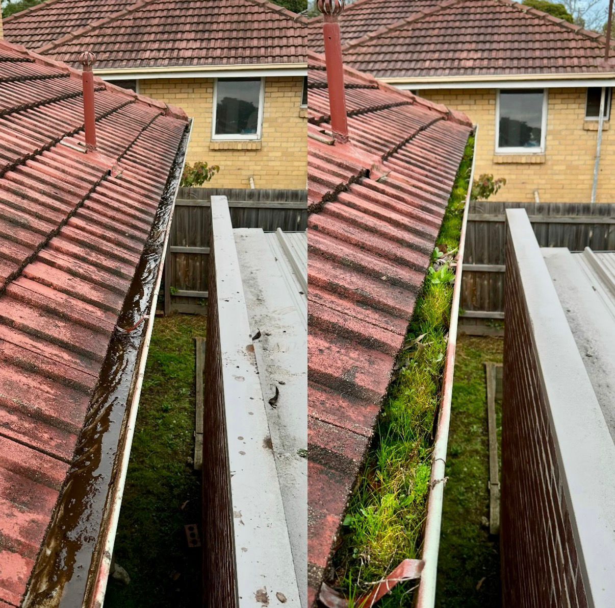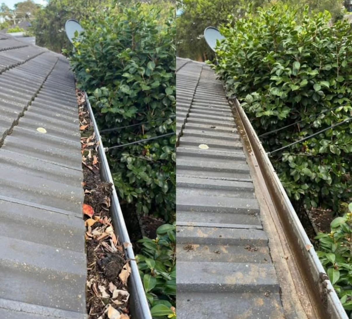 Complete gutter clean, downpipe flush, FREE roof inspection, before/after photos, and no-mess guarantee.